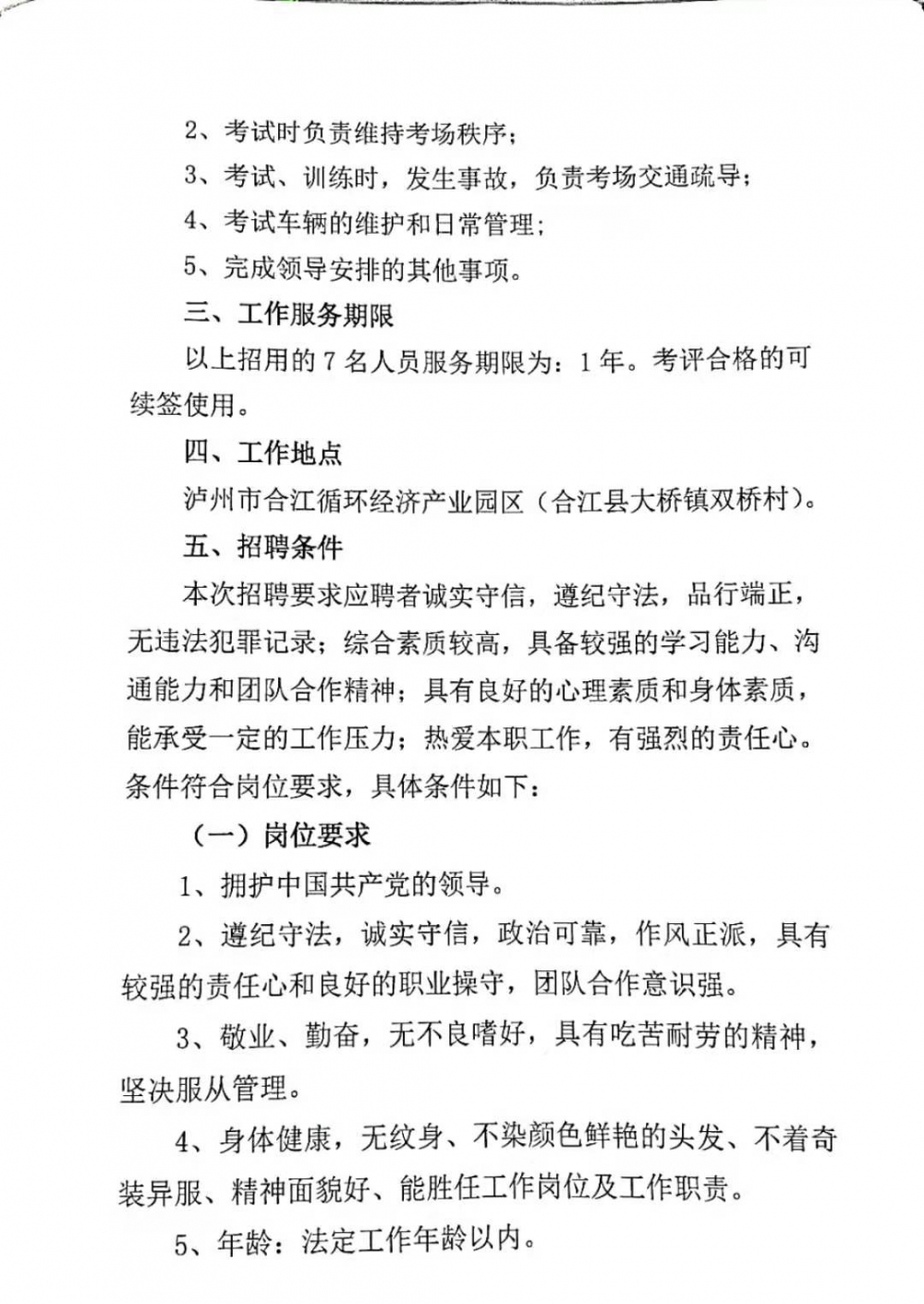 關于招聘派遣至合江永盛汽車服務有限公司社會輔助考試員的公告