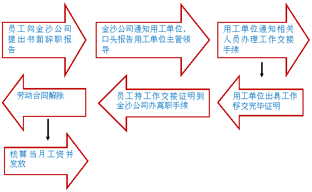 1、合同期內(nèi):員工提前30天,以書面形式向金沙公司提出辭職報告。