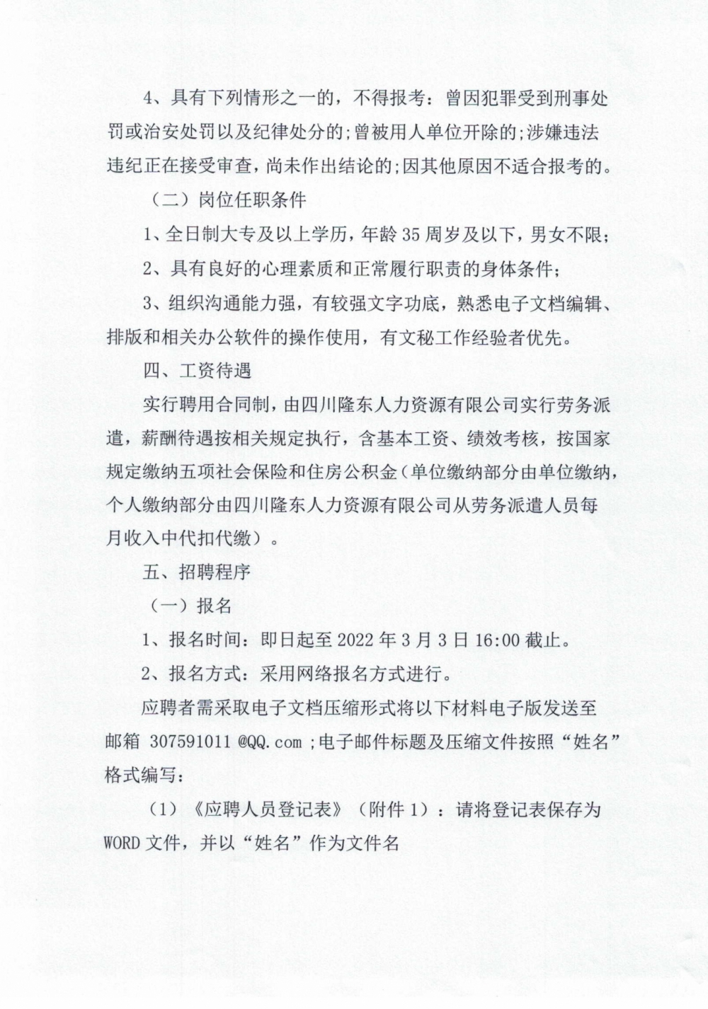 四川隆東人力資源有限責(zé)任公司關(guān)于招聘辦公室工作人員的公告