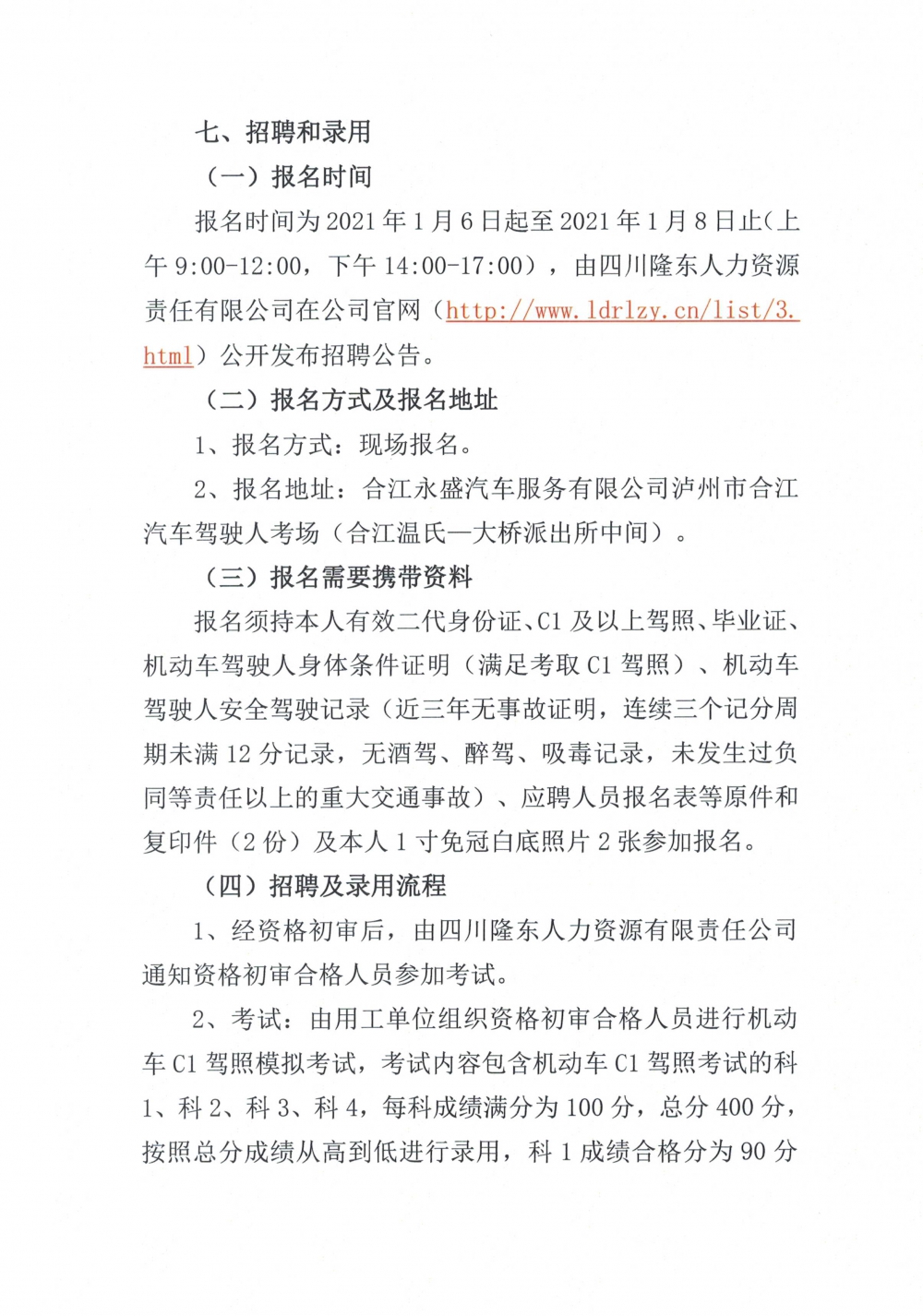 關(guān)于招聘派遣至合江永盛汽車服務(wù)有限公司社會輔助考試員的 (公 告)