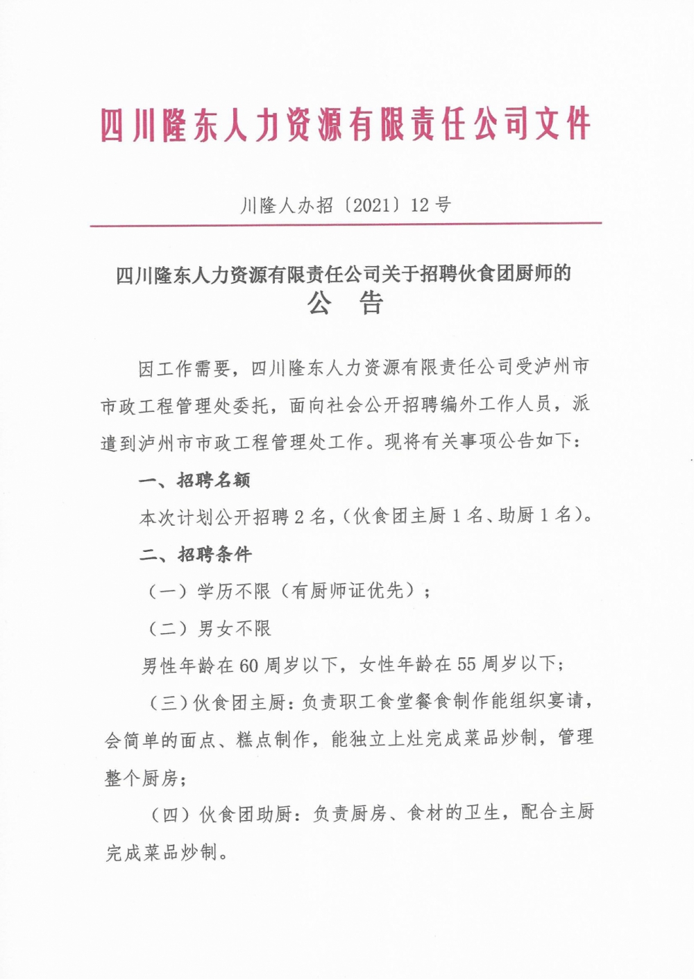 關(guān)于錄用派遣至瀘州白酒產(chǎn)業(yè)園區(qū)綜合服務器中心勞務工作人員的公...